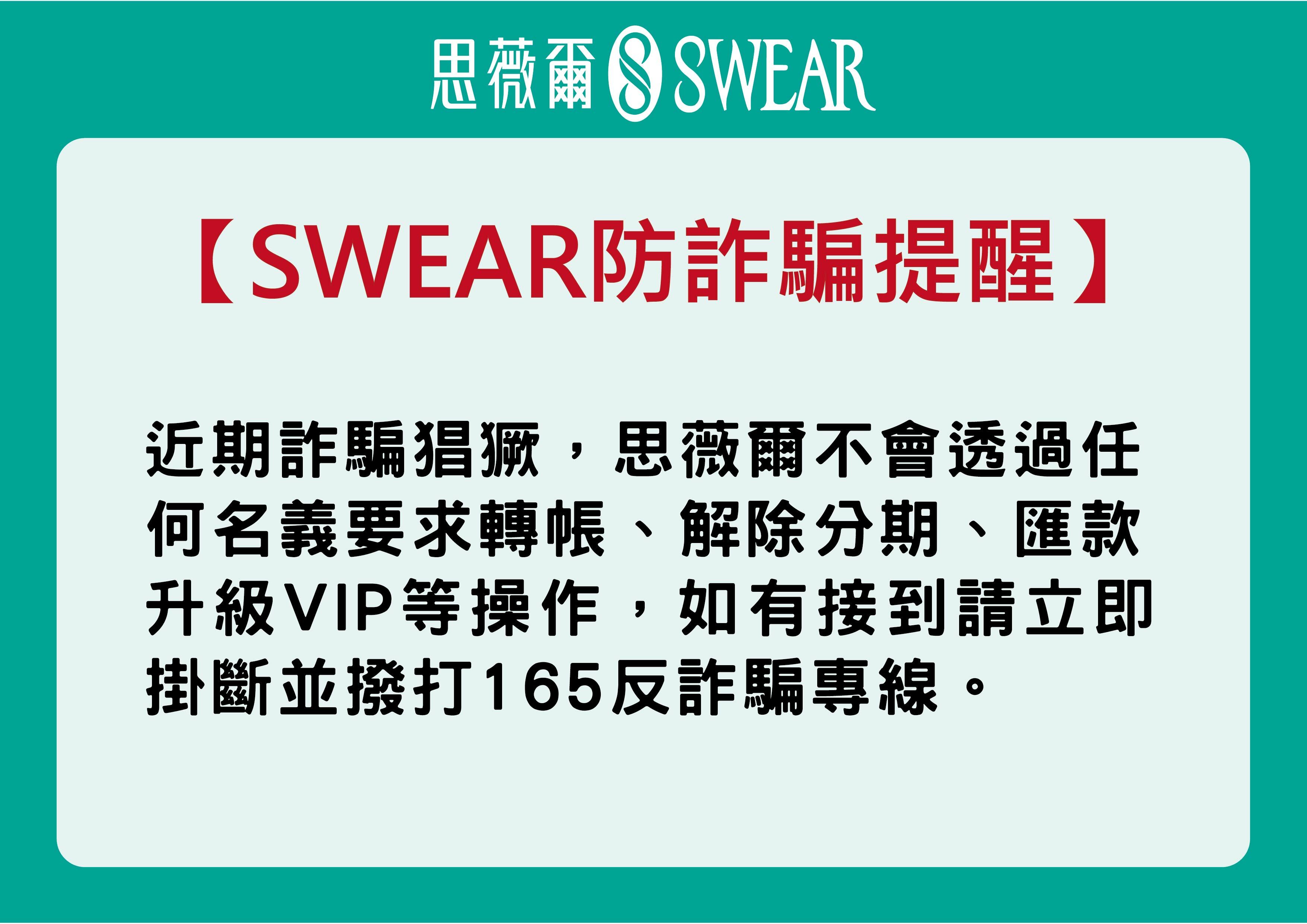 思薇爾不會透過任何名義要求轉帳、解除分期、匯款升級VIP等操作,如有接獲疑似詐騙電話請立即掛斷並通報165警政署反詐騙專線。